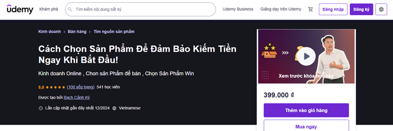 Khóa học “Cách Chọn Sản Phẩm Để Đảm Bảo Kiếm Tiền Ngay Khi Bắt Đầu!” trên Udemy là lựa chọn tuyệt vời cho những ai mới bước chân vào kinh doanh online. Nội dung được xây dựng bài bản, giúp học viên hiểu rõ cách nghiên cứu thị trường, phân tích nhu cầu khách hàng và chọn sản phẩm có tiềm năng sinh lợi cao. Giảng viên chia sẻ nhiều ví dụ thực tế, dễ áp dụng ngay sau khi học, nhờ đó rút ngắn thời gian thử sai.