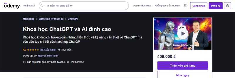 Khóa học “ChatGPT và AI đỉnh cao” trên Udemy là lựa chọn tuyệt vời cho những ai muốn khai thác sức mạnh của trí tuệ nhân tạo trong công việc và đời sống. Nội dung được thiết kế bài bản, dễ hiểu, giúp người học từ cơ bản đến nâng cao đều có thể áp dụng ngay.